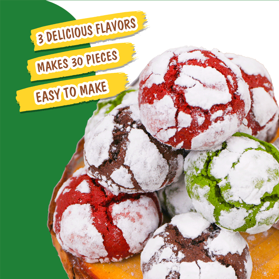 Bring bakery-style crinkle cookies straight from your oven with our Crinkle Cookies DIY Kit. Each kit is carefully pre-measured and packed so you can bake perfectly crackled, soft, and fudgy cookies at home — no guesswork needed.