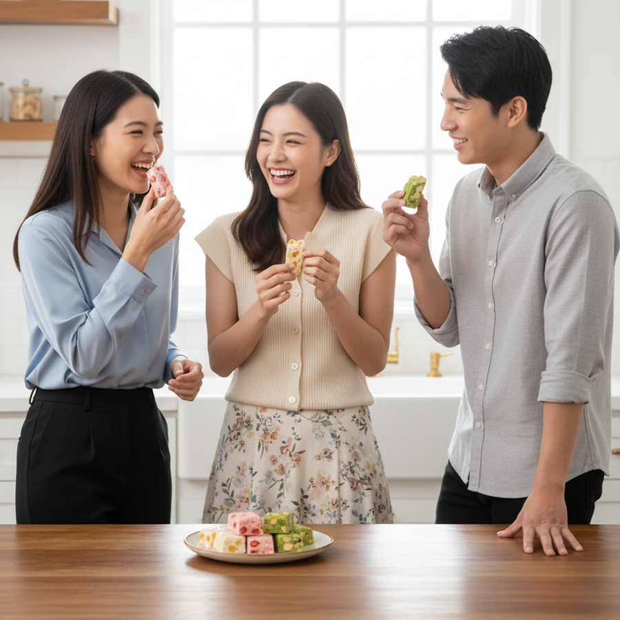 Nougat is often called the “Happiness Candy” — a delightful blend of creamy milk, butter, and the refreshing sweetness of dried fruits. Its charming, colorful appearance makes it almost too pretty to eat!