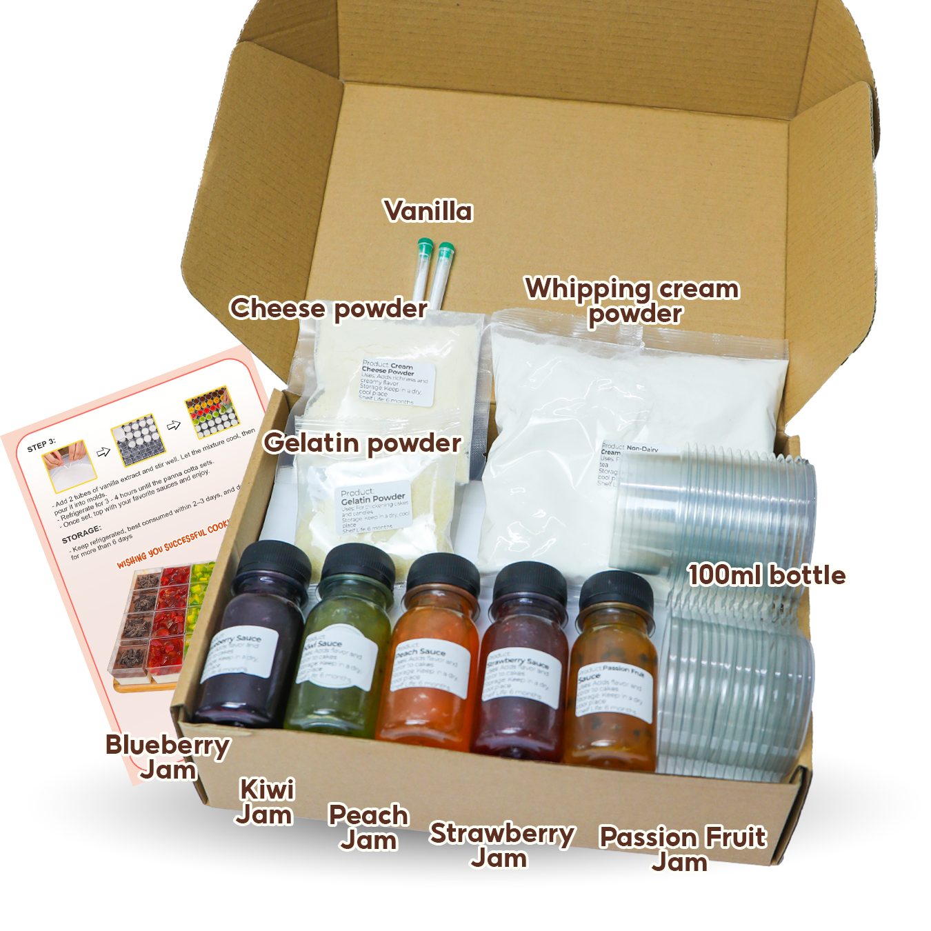 Bánh Panna Cotta dâu, đào, socola ONICI set nguyên liệu